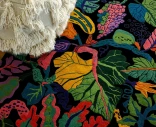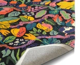 Heritage Gardenissa on runsas ja yksityiskohtainen kuviointi, jossa lehdet, hedelmät ja kasvillisuus kietoutuvat yhteen koko maton pinnalla. Orgaaniset muodot ja monipuolinen värimaailma luovat elävän ilmeen, joka tuo huoneeseen luonnetta ja syvyyttä.