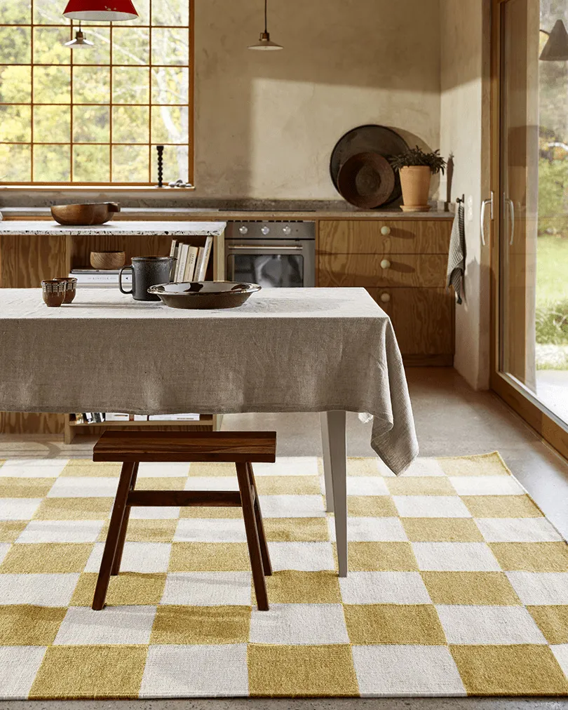 Matto Square on käsinkudottu villamatto, jossa on klassinen ruutukuvio. Käännettävän designin ansiosta voit käyttää molempia puolia, mikä pidentää maton käyttöikää. Kestävä villa tuntuu pehmeältä ja on luonnostaan likaa hylkivä. Sopii keittiöön, olohuoneeseen ja makuuhuoneeseen.