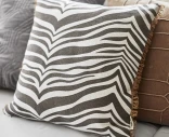 Zebra-tyyny Classic Collectionilta on valmistettu puuvillasta, ja siinä on käsinpainettu seeprakuosi sekä juuttinen reunakanttaus. Takapuoli on yksivärinen ja tyyny toimitetaan sisätyynyn kanssa. Persoonallinen tekstiiliyksityiskohta, joka sopii niin sohvalle, nojatuoliin kuin makuuhuoneeseenkin.