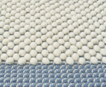 “Pebble Rug is inspired by the sensuous feeling of a pebbled beach with its diverse and tactile surface, inviting you to take off your shoes and walk across it barefooted. With a handwoven structure that references fashion textiles, the Pebble Rug plays with the contrasting materials of its soft, woolen loops, sitting atop a sturdy canvas base in cooling jute yarn. Pebble Rug brings a new perspective to any space through its woolen loops, popping up from the ground like sprouts in a bed of moss, joined by the distinct woven texture of its surface.”