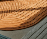 “The Relevo rug came to be as it often does; on the drawing board with paper and pencil. We like to create a whole story around a project, this time with a rug that could be a sculpture in its own right, virtually changing the perception of a room. Relevo’s swooping lines were inspired by land art and its sometimes furrowed, hypnotic paths in the soil. Relevo means relief in Latin, emblematic of the rug’s geometric pattern, made by trimming the hand tufted rug in levels and thereby creating a subtle effect of light and shadow, a compelling visual expression.”