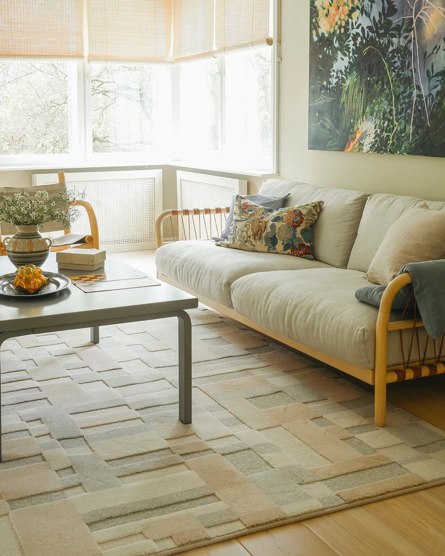 Nukka on valmistettu 100 % villasta, kestävästä luonnonmateriaalista, joka tuntuu miellyttävältä jalkojen alla ja jolla on luonnostaan likaa hylkiviä ominaisuuksia. Vaihteleva nukan korkeus muodostaa hienovaraisen ruutukuvion, joka antaa matolle rakennetta ja syvyyttä.