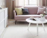 Pesuohje: Kuivapesu vaahdolla tai hellävarainen ammattimainen tasovesipesu max. +30°C miedolla hienopesuaineliuoksella. Ei liotusta tai hankausta. Huolellinen huuhtelu runsaalla vedellä. Ylimääräinen vesi poistetaan esim. telapuristimella. Matto muotoillaan kosteana ja kuivatetaan ilmavasti tasossa. Ei saa taittaa.