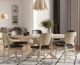 Ruokapöydässä on 30 mm paksu pöytälevy ja puiset jalat. Sekä pöytä että jalat on valmistettu massiivitammesta, mikä antaa pöydälle kauniin, rustiikkisen ilmeen. Pyöreä muoto tuo kalusteeseen keveyttä ja luo täydellisen tasapainon muotoiluun.