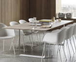 70/70 -pöydällä on selkeä ja yksinkertainen muotoilu hienoilla yksityiskohdilla. Pöydän jalat ovat kolmionmuotoiset, mikä antaa sille modernin tuntuman. Valitse useista eri koko- ja pintakäsittelyvaihtoehdoista sopiva vaihtoehto kaikenlaisiin ruokailutiloihin, kotitoimistoihin, työtiloihin tai hotelliympäristöihin.