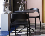 “The Cover Side Chair is born from a desire to bring modern perspectives to the archetypal wooden chair. I wanted to give the design a crisp and contemporary expression through its thin plywood material, paired with the solid and grounded sentiment of its frame and base in solid wood. With the details of its curved backrest that folds gently around the back legs and its warm materiality, the stackable Cover Side Chair translates the ideas of Scandinavian craftsmanship into a modern design language.”