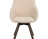 Rowicon Alison on suosittu kääntyvä tuoli, jossa yhdistyvät mukavuus ja moderni muotoilu. Tässä käsinojallisessa Alison-versiossa verhoilu on kestävää, vaalean beigeä kangasta ja jalat tammea.