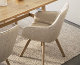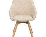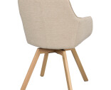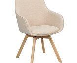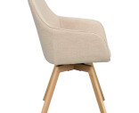 Rowicon Alison on suosittu kääntyvä tuoli, jossa yhdistyvät mukavuus ja moderni muotoilu. Tässä käsinojallisessa Alison-versiossa verhoilu on kestävää, vaalean beigeä kangasta ja jalat tammea.