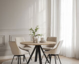 Pyörivä Alison ruokapöydän tuoli light beigellä verhoilulla.