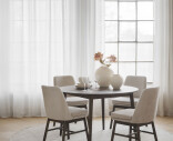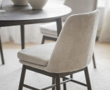 Amesbury-tuoli, jossa on massiiviset ruskeaksi petsatut tammijalat, tuo luonnollista eleganssia kotiisi. Tuoli on verhoiltu vaaleanbeigellä kankaalla, jossa on hienostunut rakenne ja se on uskomattoman pehmeä samalla kun se on erittäin kestävä. Paksun tyynyn ansiosta, joka on myös irrotettavissa, voit istua mukavasti pitkien illallisten aikana ja nauttia jokaisesta hetkestä.