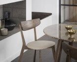 Puutuoli ruskealakattu tammi, istuin beige kangas.