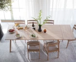 Ruokapöytää voi jatkaa yhdellä tai kahdella jatkolevyllä – kokonaispituus jopa 310 cm, kun haluat kattaa pöydän isommalle seurueelle.