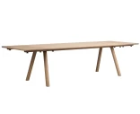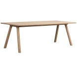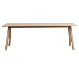 Clapperton-ruokapöytä Rowicolta on massiivipuinen pöytä, jossa korostuvat selkeä muotokieli ja vahva käsityön tuntu. Vinot jalat kohtaavat tyylikkäässä leikkauksessa, joka antaa pöydälle ilmettä, ja öljytty pinta korostaa tammen luonnollista rakennetta. Pöytää voi täydentää jatkolevyillä – kokonaispituus jopa 310 cm.