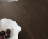 Ovaali ruokapöytä massiivisesta FSC®-sertifioidusta, lakatusta tummasta tammesta.