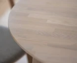 Ovaali ruokapöytä massiivisesta FSC®-sertifioidusta tammesta, valkopigmentoidulla kovavahalla käsiteltynä.