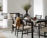 Yhdellä tai kahdella jatkolevyllä pöydän pituutta voidaan pidentää 185 tai 230 cm:iin, mikä tekee Markhamista ihanteellisen sekä pienille että suurille seurueille. Pöytä on käsitelty Rubio Monocoat -öljyllä, joka antaa kestävän pinnan ja suojaa tehokkaasti kulutukselta, minkä ansiosta pöytä vaatii vain vähäistä huoltoa.