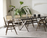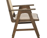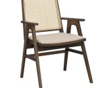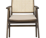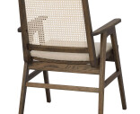 Prestwick-tuoli ruskealakattua tammea on trendikäs ja FSC-sertifioitu tuoli. Punottu luonnonrottingista valmistettu selkänoja luo kauniin kontrastin harmonisen tammen kanssa. Pehmustettu istuin kestävässä beigeissä kankaassa yhdessä hyvin suunniteltujen käsinojien kanssa tekee tuolista erityisen mukavan. Saatavilla myös valkaistusta tammesta.