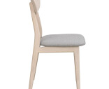 Rodham tuoli valkopigmentoitu tammi, istuin vaaleanharmaa kangas. Runko ja selkänoja massiivitammea lakatulla pinnalla ja istuimen verhoilu helppohoitoista ja kestävää polyesteria. Rodham on mukava ja tyylikäs tuoli jossa on sekä trendikäs että hienostunut ilme. Tuolia on saatavana useassa luonnonläheisessä värissä.