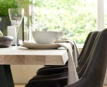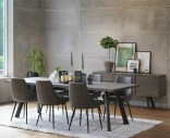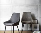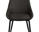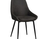 Tyylikäs Sierra ruokapöydän tuoli on verhoiltu tummanharmaalla mikrokuitukankaalla (100% polyesteri) ja sen jalat ovat mustaa metallia.