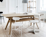Tässä ruokapöydässä on älykäs jatkettava toiminto. Kaksi piilotettua pöytätasoa lisäävät istumapaikkoja kuudesta kahteentoista. Pöydässä on suorakulmainen pöytälevy omaleimaisella profiililla, sekä kiilamaiset jalat, jotka luovat ainutlaatuisen ilmeen.