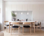 Skovby #119 on suurempi ruokapöytä ajattomalla skandinaavisella designilla, joka sopii täydellisesti sekä arkeen että juhlaan. Pöydässä on suorakaiteen muotoinen pöytälevy, jossa on pehmeästi pyöristetyt kulmat, kestävä laminaattipinta ja viistot jalat. Pöytälevyn alla on säilytyslokero, johon mahtuu enintään kaksi jatkolevyä.