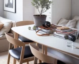 Skovby #119 laminaattipintaisella pöytälevyllä on käytännöllinen valinta sinulle, joka haluat kestävän pöydän tinkimättä designista. Laminaatti on erittäin kestävä ja helppo puhdistaa, mikä tekee pöydästä ihanteellisen perhe-elämään tai suurempiin illallisiin.