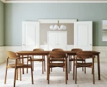 Skovby #142 on joustava ruokapöytä, joka on valmistettu lakatusta pähkinäpuusta ja jossa on kestävä nanolaminaattipintainen pöytälevy sävyssä Nutmeg. Pöydässä on kaksi piilotettua jatkopalaa, ja sitä voi helposti pidentää 6–10 hengelle – ihanteellinen sekä arkeen että juhlaan.