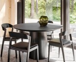 Skovby #33 on pyöreä ruokapöytä 6–9 hengelle, jossa on täysin pöytälevyn alle piilotettu patentoitu jatkomekanismi. Musta tammi antaa pöydälle erottuvan ja modernin ilmeen, samalla kun pöytä säilyttää klassisen toiminnallisuutensa.