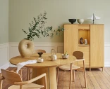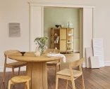 Skovby #33 on pyöreä ruokapöytä 6–9 hengelle. Patentoitu jatkomekanismi on piilotettu pöytälevyn alle ja mahdollistaa pöydän laajentamisen helposti ilman irrallisia lisälevyjä. Öljytty tammi antaa pöydälle lämpimän ja luonnollisen ilmeen, joka kestää aikaa.