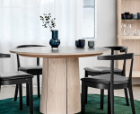 Skovby #33 on pyöreä ruokapöytä 6–9 hengelle, jossa on piilotettu, patentoitu jatkomekanismi. Valkoöljytty tammi antaa pöydälle vaalean ja luonnollisen ilmeen, joka sopii niin klassisiin kuin moderneihinkin koteihin.