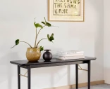Kompakti kaksipaikkainen penkki massiivipuusta, jossa on elegantteja messinkiyksityiskohtia. Tyylikäs ja toiminnallinen huonekalu pienempiin tiloihin – täydellinen eteiseen, makuuhuoneeseen tai lisäistuimeksi.