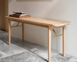 Skovby 832 on siro kaksipaikkainen penkki, joka on valmistettu massiivitammesta huolella ja tarkkuudella muotoiltuna. Pyöristetyt kulmat ja pehmeät linjat korostavat penkin harmonista ilmettä, kun taas istuinosan alla olevat messinkiyksityiskohdat tuovat hienovaraisen mutta selkeän laadun tunteen.