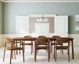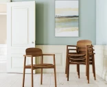Skovby #842 on pinottava ruokatuoli, joka yhdistää yksinkertaisen ja kevyen muotoilun toiminnallisuuteen. Käsinoja on integroitu selkänojaan, mikä korostaa tuolin tyylikästä ja ilmavaa ulkonäköä. Tuoli on ergonomisesti muotoiltu tarjoamaan erinomaista mukavuutta. Valmistettu pähkinäpuusta, ja selkänoja/istuin ovat viilua.