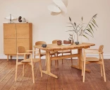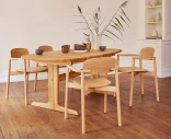 Skovby #842 on pinottava ruokatuoli, joka yhdistää yksinkertaisen ja kevyen muotoilun toiminnallisuuteen. Käsinoja on integroitu selkänojaan, mikä korostaa tuolin tyylikästä ja ilmavaa ulkonäköä. Tuoli on ergonomisesti muotoiltu tarjoamaan erinomaista mukavuutta. Valmistettu massiivitammesta, ja selkänoja/istuin ovat tammiviilua.