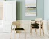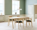 Tämä valkoöljytystä tammesta valmistettu Skovby #842 -variantti tarjoaa saman tyylikkään ja pinottavan muotoilun, mutta lisää mukavuutta verhoillulla, kestävästä kankaasta valmistetulla istuimella. Käsinoja on integroitu selkänojaan, mikä antaa tuolille elegantin ja yhtenäisen ilmeen. Tuoli on ergonomisesti muotoiltu korkean mukavuuden takaamiseksi ja valmistettu kestävistä materiaaleista. Verhoillun istuimen ansiosta tämä malli on erinomainen valinta niille, jotka arvostavat sekä mukavuutta että modernia, skandinaavista muotoilua. Kangas on saatavilla useissa eri väreissä – katso kangaskartta.