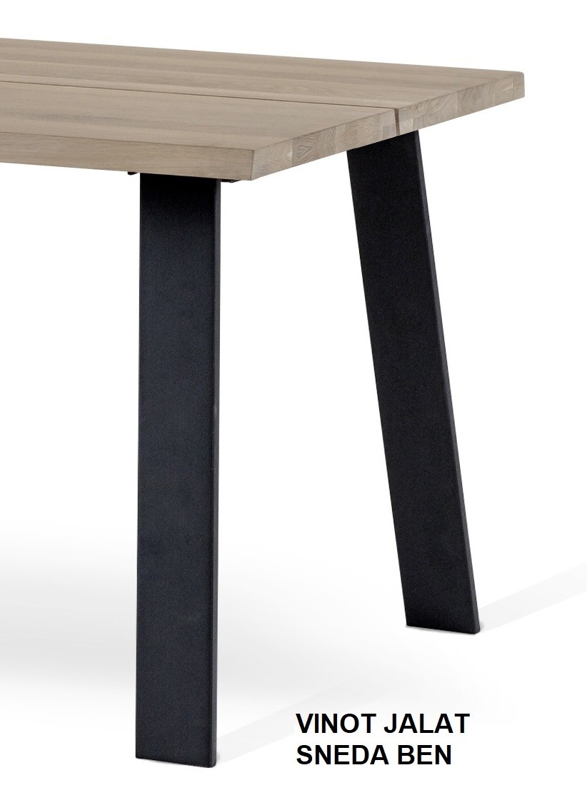 Massiivi valkoöljytty tammi ruokapöytä, musta metallijalusta.