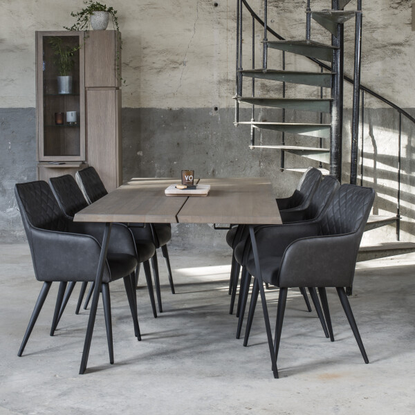 1 kpl Hope ruokapöytä 210x95cm harmaa petsattu tammi, musta metalli jalusta