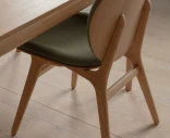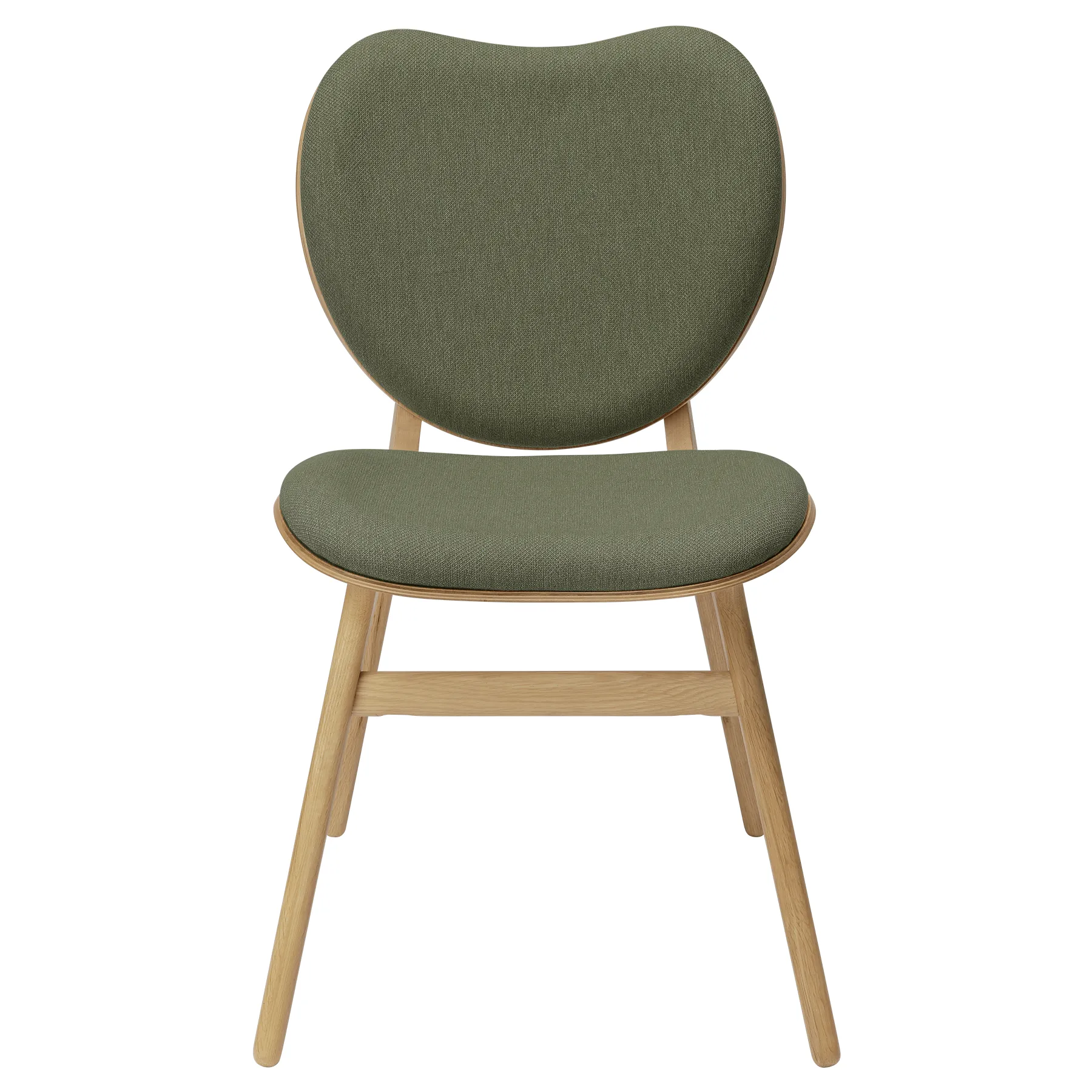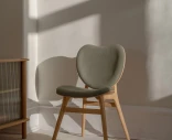 Runko on valmistettu massiivitammesta, ja istuin sekä selkänoja ovat muotoonpuristettua koivuvaneria tammiviilulla. Verhoiluna on Horizons – kestävä tekstiili, joka on valmistettu 100-prosenttisesti kierrätetystä polyesteristä. Pyöristetyt jalat, selkänojan pehmeät linjat ja tilava istuinosa muodostavat kokonaisuuden, jossa jokainen yksityiskohta on huolellisesti viimeistelty.