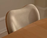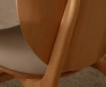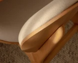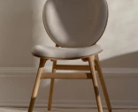 Runko on valmistettu massiivitammesta, ja istuin sekä selkänoja ovat muotoonpuristettua koivuvaneria tammiviilulla. Verhoiluna on Horizons – kestävä tekstiili, joka on valmistettu 100-prosenttisesti kierrätetystä polyesteristä. Pyöristetyt jalat, selkänojan pehmeät linjat ja tilava istuinosa muodostavat kokonaisuuden, jossa jokainen yksityiskohta on huolellisesti viimeistelty.