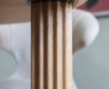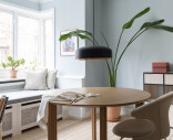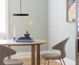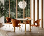 Comfort Circle -pöydässä on useita huomiota herättäviä yksityiskohtia, kuten tammesta valmistetut pisaranmuotoiset jalat pystysuuntaisilla urilla. Kevyt muotoilu sopii täydellisesti myös pienempiin tiloihin, ja pyöreän pöydän ympärillä on juuri sopivasti tilaa neljälle henkilölle.