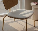 Curious-loungetuoli istuintyynyllä yhdistää skandinaavisen minimalismin ja lisämukavuuden. Tammiviilusta valmistettu runko ja messinki- tai mustat teräsjalat täydentyvät pehmeällä istuintyynyllä, joka on saatavana huolellisesti valituissa väreissä ja materiaaleissa.