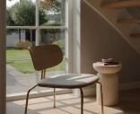 Pehmustettu istuintyyny lisää istuinmukavuutta ja on saatavana huolellisesti valituissa sävyissä 100 % kierrätetystä Horizons-kankaasta sekä pehmeästä Teddy Bear -tekstiilistä. Voit räätälöidä tuolin sisustukseesi sopivaksi valitsemalla messinki- tai mustat teräsjalat ja istuintyynyn harmonisissa, maanläheisissä sävyissä.