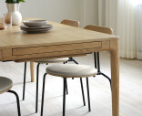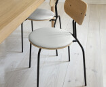 Curious on pinottava tuoli, jonka kevyt, minimalistinen ja persoonallinen ilme sopii monenlaisiin tiloihin. Se on valmistettu tammiviilusta, ja sen jalat ovat joko messinkiä tai mustaa terästä. Lisämukavuutta tuo pehmeä istuintyyny, joka on saatavana 17 huolellisesti valitussa sävyssä 100 % kierrätetystä Horizons-kankaasta.