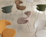 Horizons-kangas on kierrätetty muovijätteestä ja sertifioitu Global Recycled Standard- ja OEKO-TEX 100 -standardilla. Time Flies on saatavilla 17 huolellisesti valitussa värissä Horizons-kankaasta ja tuoliin voi valita joko messinki-, kromi- tai mustat jalat.