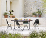 DSR-tuolin niin kutsuttu 'Eiffel'-jalkaosa on teräslangasta valmistettu rakenne, jossa yhdistyvät kevyet, elegantit muodot ja rakenteellinen lujuus. Orgaanisesti muotoiltu, kierrätetystä polypropeenista valmistettu istuinosa on sekä ergonominen että kestävä. Tyylikäs klassikkotuoli sopii niin ruokailutilaan, kotitoimistoon kuin muihin kodin tiloihin. Jalat ovat jauhemaalattua terästä, minkä ansiosta tuoli soveltuu myös ulkokäyttöön.