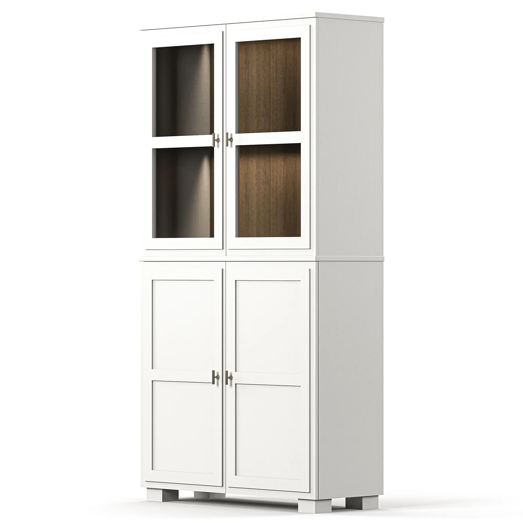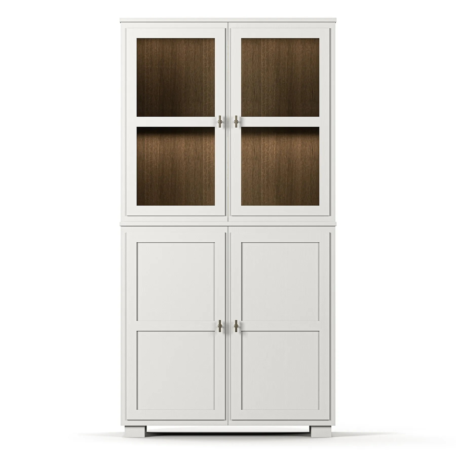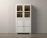 Englesson CAMDEN vitriinikaappi 2+2 lasi-/puuovea, valaistuksella, valkoinen/petsattu tammi