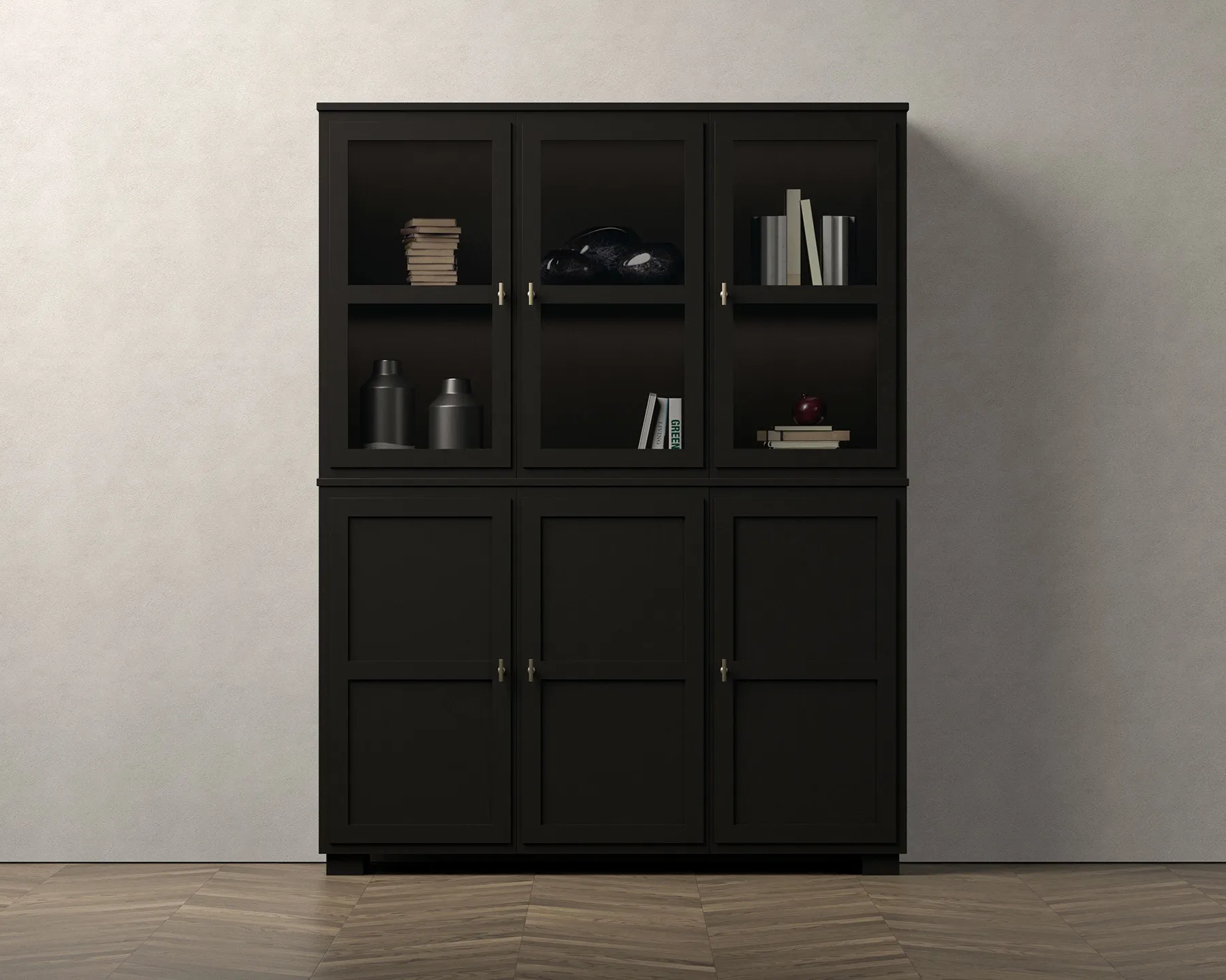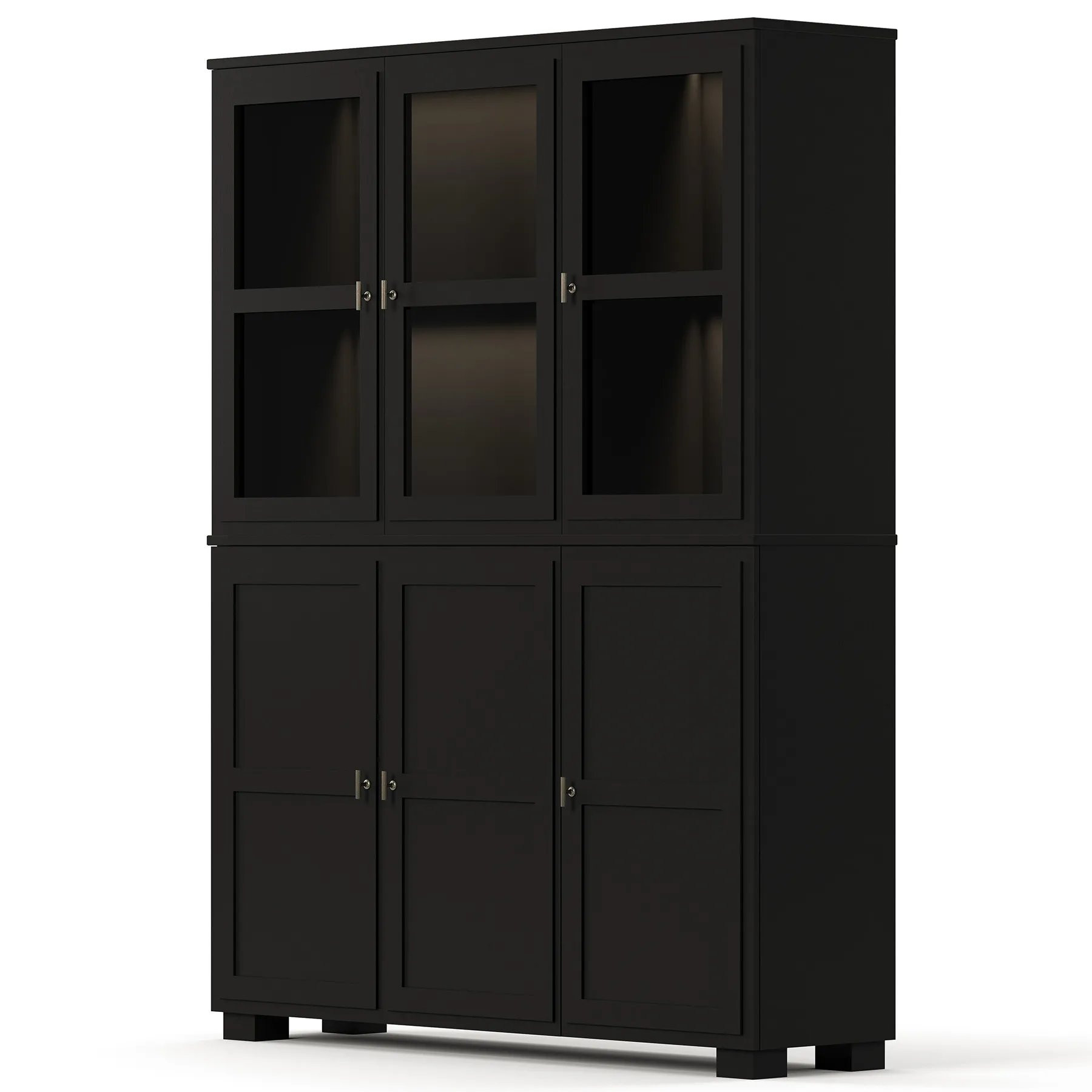 Englesson CAMDEN vitriinikaappi 3+3 lasi-/puuovea, valaistuksella, musta