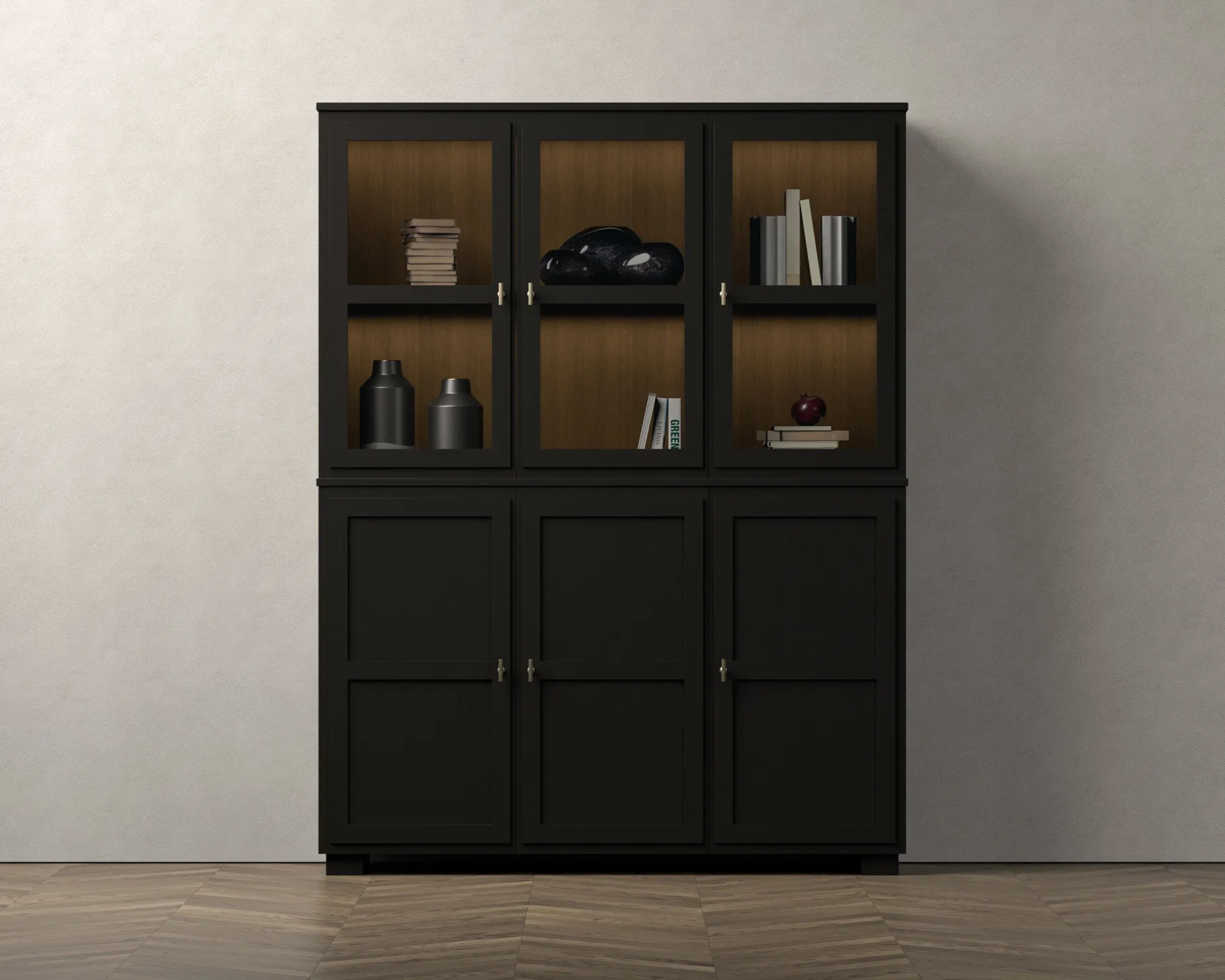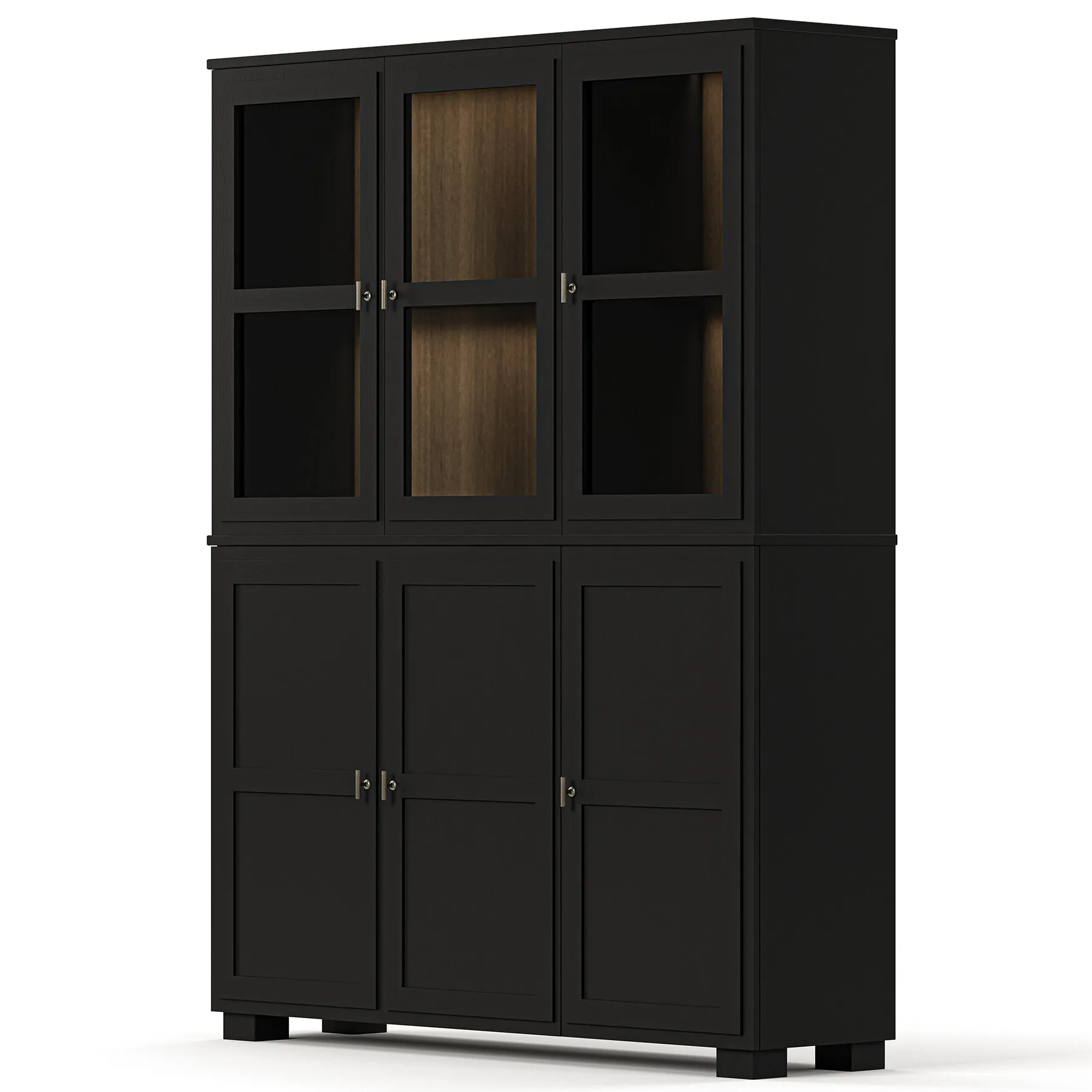 Englesson CAMDEN vitriinikaappi 3+3 lasi-/puuovea, valaistuksella, musta/petsattu tammi