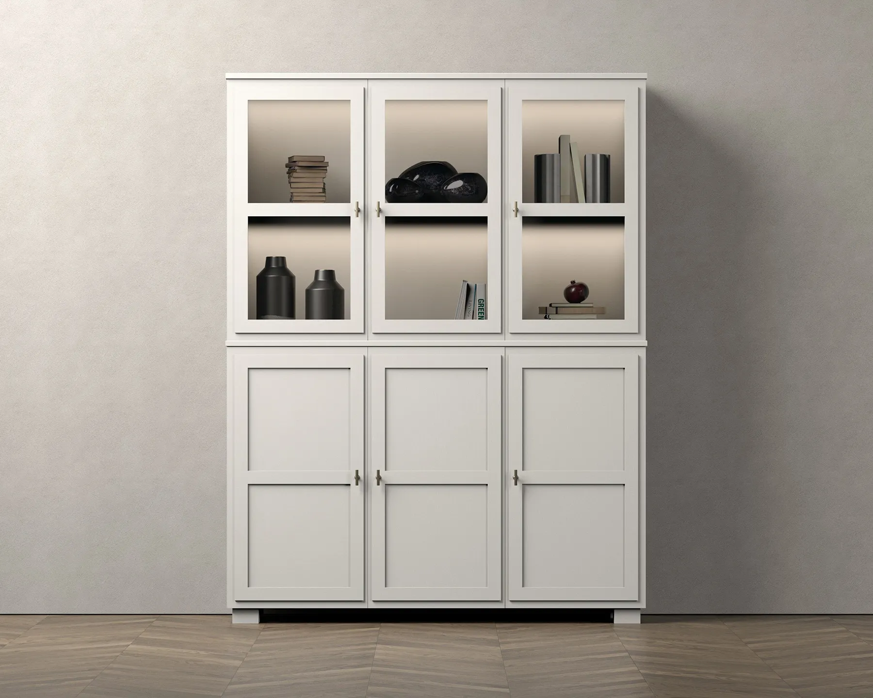 Englesson CAMDEN vitriinikaappi 3+3 lasi-/puuovea, valaistuksella, valkoinen