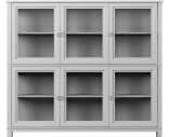 Kaapissa on yhteensä kuusi lasiovea ja hyllyt kummassakin osassa, tarjoten runsaasti tilaa lasien, astioiden tai koriste-esineiden esillepanoon. Kapeat jalat, ohuet levyt ja pelkistetyt yksityiskohdat luovat ilmavan ilmeen, joka sopii niin klassisiin kuin moderneihinkin koteihin.